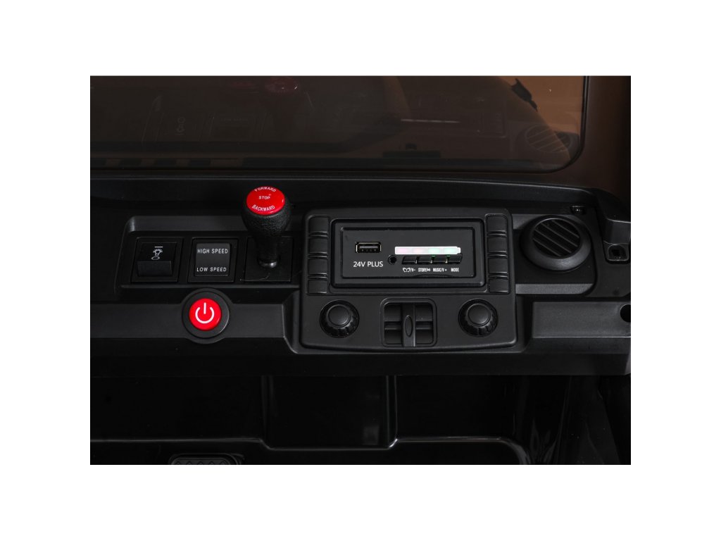 Elektrické autíčko Extreme Sport se čtyřmi motory o celkovém výkonu 960W nesmí chybět v žádné dětské garáži. Autíčko je poháněno baterii s kapacitou 12V7Ah x2. Maximální zatížení vozítka je 60 kg. Během jízdy dítě určitě zaujme hudební panel s MP3, Bluetooth, USB, AUX, Rádiem a vstupem pro SD kartu.