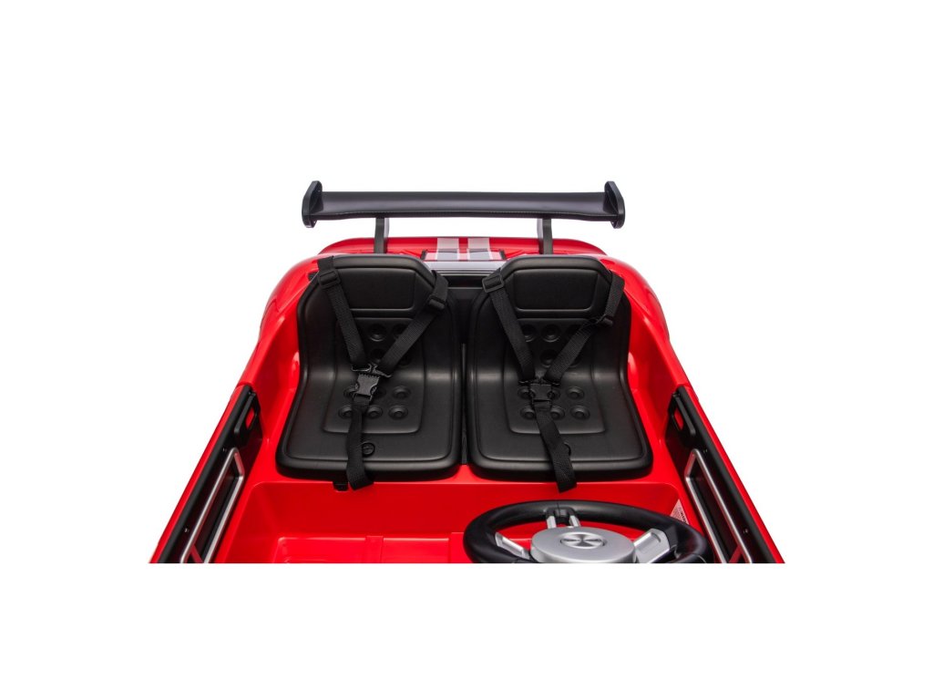 Stylový design, silný výkon a špičková výbava – to je dětské elektrické autíčko Ford GT s licencí značky Ford. Nabízí čtyři výkonné motory o celkovém výkonu 400 W, robustní konstrukci a pohodlné dvoumístné sezení z ekokůže. Díky měkkým EVA kolům, odpružení zadních kol a funkci pomalého rozjezdu je jízda plynulá a bezpečná i pro nejmenší řidiče. Ovládání je možné i dálkovým ovladačem s nouzovým tlačítkem STOP.