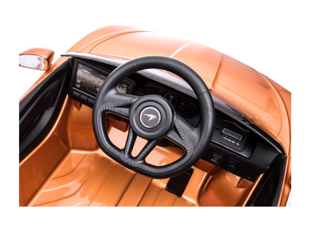 Elektrické autíčko McLaren GT lakované má dva motory s výkonem 45W a baterii s kapacitou 12V 10Ah. O pohodlnou jízdu se postarají pěnová EVA kola a sedačka potažená ekologickou kůží. Dítěti jízdu určitě zpříjemní hudební panel s MP3, USB, Bluetooth a Rádiem. Nosnost autíčka je 30 kg. Autíčko má přední a zadní LED osvětlení a otevírací dveře.