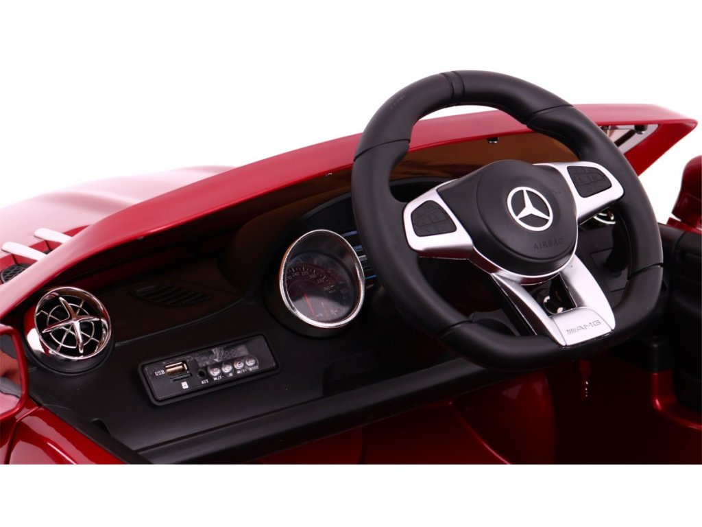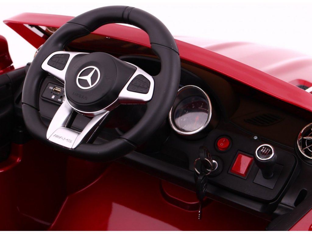Představujeme Vám elektrické auto s licencí Mercedes Benz AMG SL65. Autíčko je jednomístné má velmi pohodlnou koženou sedačku, která je opatřená bezpečnostním pásem. Mercedes Benz AMG má realistický vzhled, originální znaky, propracované detaily. Autíčko je také vybaveno svítícími předními a zadními světly s originální optikou, hudbou a realistickými zvuky. Autíčko je také vybaveno dálkovým ovládáním, pomocí něhož můžete řídit směr a bezpečnost jízdy Vašeho dítěte. Autíčko lehce zvládne nerovné, zpevněné i nezpevněné terény a mírné kopečky s max. stoupáním 10%.