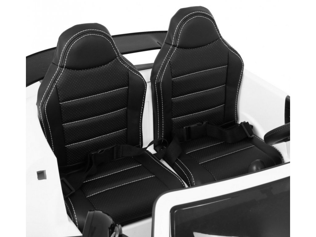 Autíčko je vybaveno bohatým hudebním panelem s FM rádiem a mnoho vstupy jako je USB, MP3, AUX či SD. Dítě se posadí do pohodlně tvarované sedačky z ekologické kůže s bezpečnostními pásy. Na cestu si posvítíte předními i zadními LED světly.