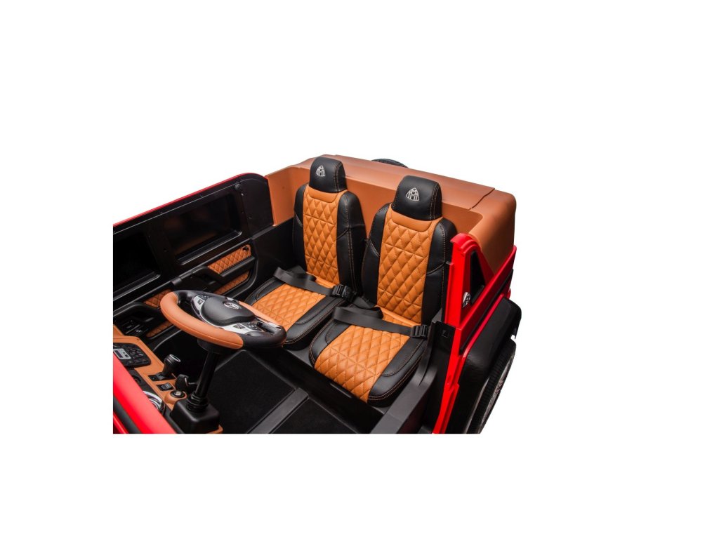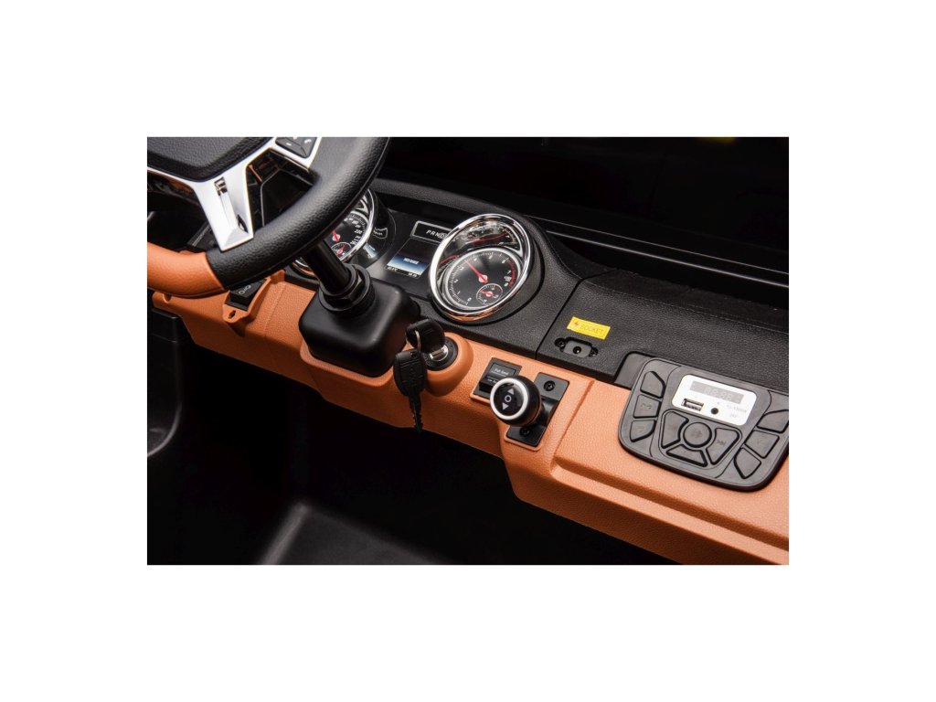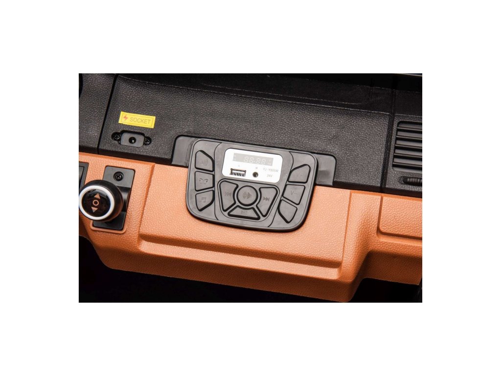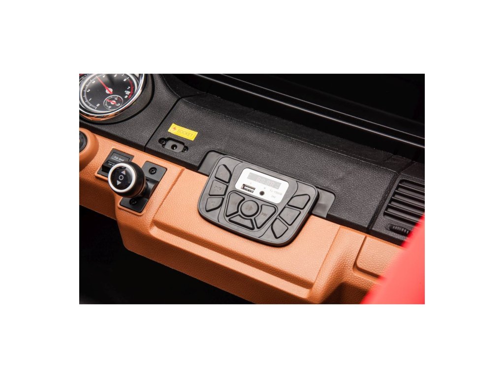 Součástí vozu je moderní dotykový MP4 panel s pohádkami, Bluetooth, FM rádiem a vstupy USB, SD, AUX – a to vše v pěti jazykových verzích. O zábavu na cestách se postarají melodie, zvuky a klakson na volantu, stejně jako realistický zvuk motoru při startu. Světelné efekty zahrnují LED světla vpředu, vzadu, světla pro zpátečku a brzdová světla, ovládaná pomocí samostatného vypínače.