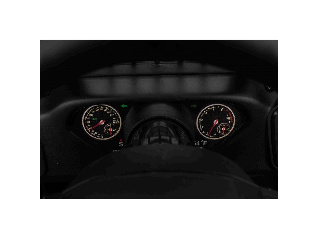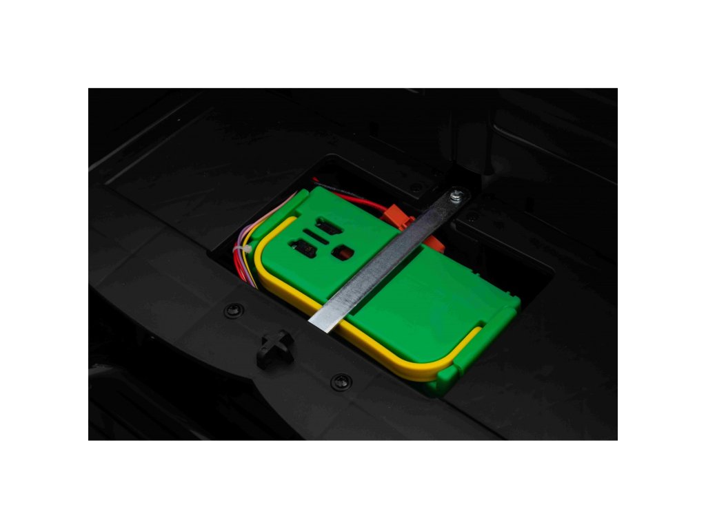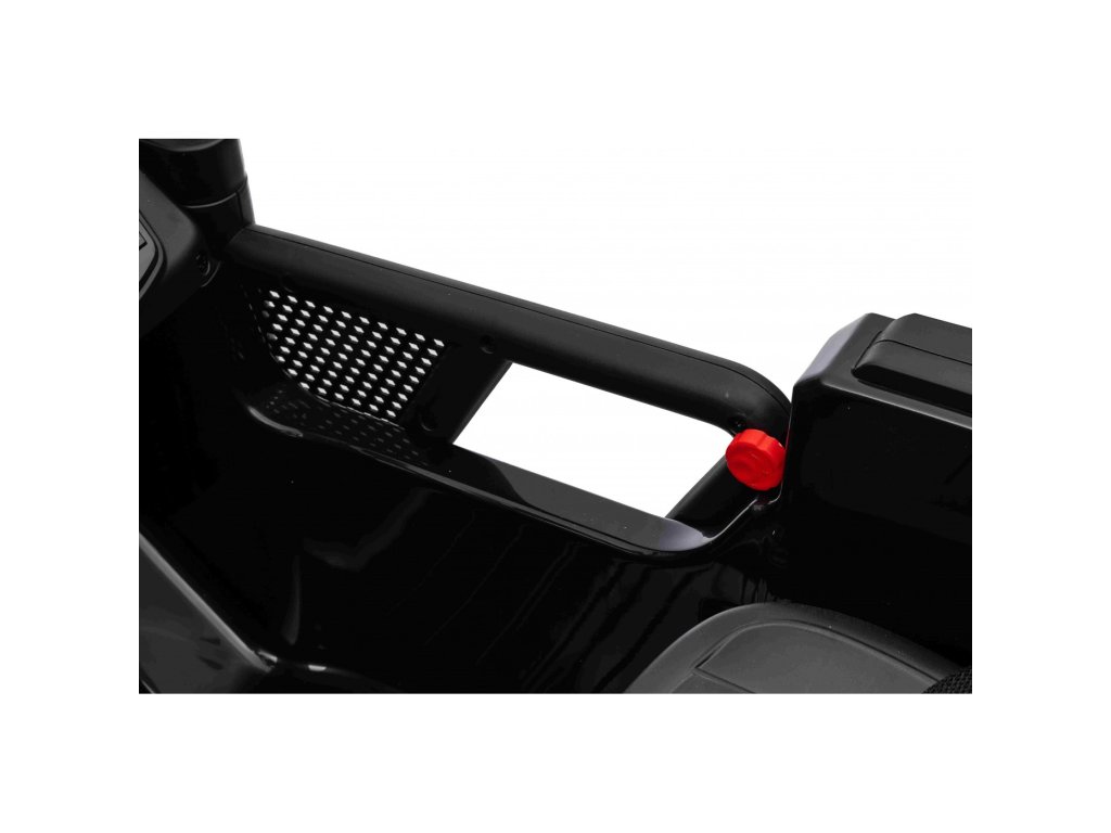 Autíčko můžete ovládat pomocí dálkového ovládání, které pracuje na frekvenci 2,4 GHz. Na dálkovém ovladači jsou tři rychlosti a bezpečnostní tlačítko STOP, které po zmáčknutí okamžitě zastaví autíčko. Sedačka je pokryta ekologickou kůží a nachází se na ní bezpečnostní pásy.