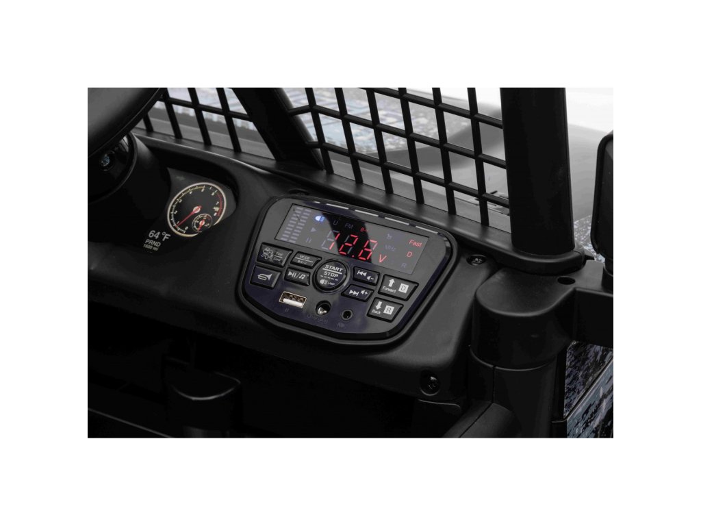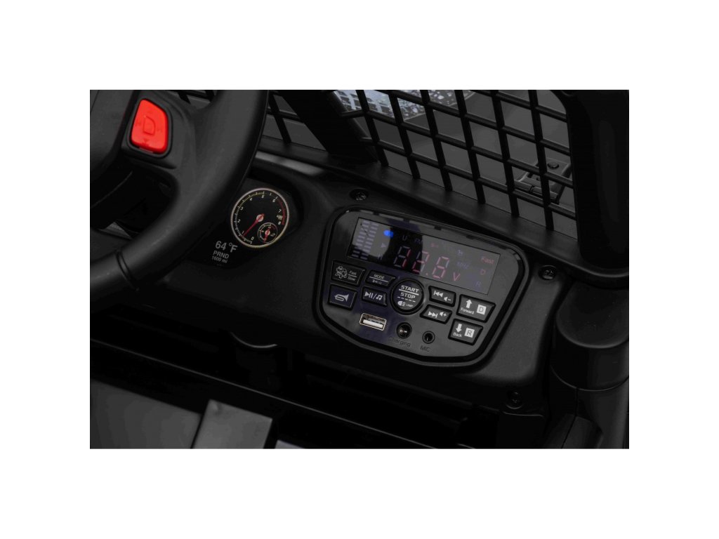 Elektrické autíčko OFF ROAD se čtyřmi motory o celkovém výkonu 140W nesmí chybět v žádné dětské garáži. Autíčko je poháněno baterii s kapacitou 12V 10Ah. Maximální zatížení vozítka je 50 kg. Během jízdy dítě určitě zaujme hudební panel s MP3, Bluetooth, USB, AUX, Rádiem a vstupem pro SD kartu.