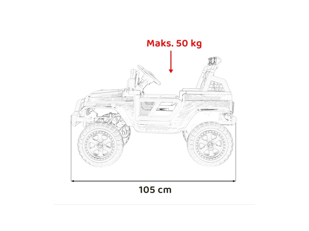 Elektrické autíčko OFF ROAD se čtyřmi motory o celkovém výkonu 140W nesmí chybět v žádné dětské garáži. Autíčko je poháněno baterii s kapacitou 12V 10Ah. Maximální zatížení vozítka je 50 kg. Během jízdy dítě určitě zaujme hudební panel s MP3, USB, AUX, Rádiem a vstupem pro SD kartu.