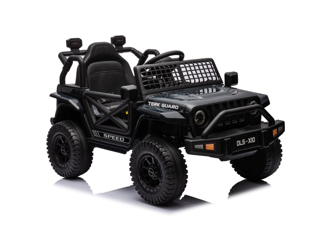 Elektrické autíčko OFFROAD černé 12V Vysoký podvozek, široké sedadlo, Odpružené nápravy, 2,4 GHz Dálkové ovládání LED světla