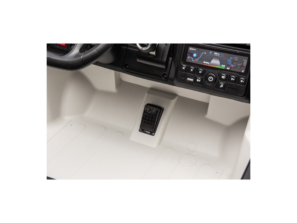 Vozidlo lze ovládat i dálkovým ovladačem, který umožňuje regulaci rychlosti, změnu směru jízdy a disponuje bezpečnostním tlačítkem Stop pro okamžité zastavení. Autíčko je vybaveno funkcí automatické brzdy, která se aktivuje po spuštění nohy z plynového pedálu. O bezpečnost se navíc postarají bezpečnostní pásy.
