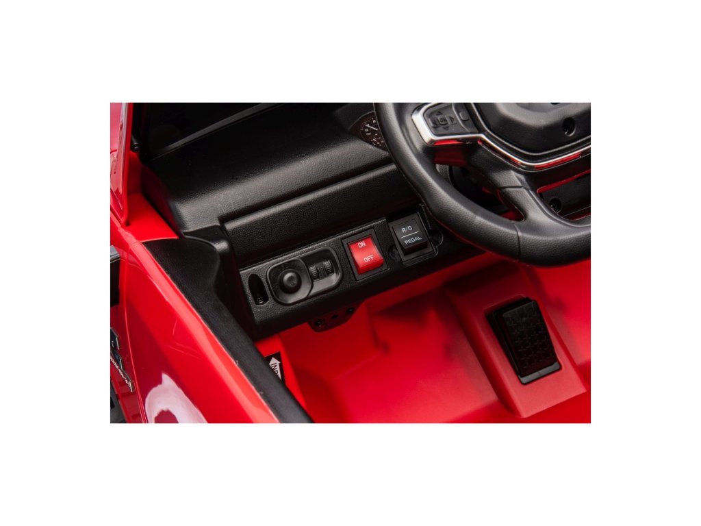 Vozidlo lze ovládat i dálkovým ovladačem, který umožňuje regulaci rychlosti, změnu směru jízdy a disponuje bezpečnostním tlačítkem Stop pro okamžité zastavení. Autíčko je vybaveno funkcí automatické brzdy, která se aktivuje po spuštění nohy z plynového pedálu. O bezpečnost se navíc postarají bezpečnostní pásy.