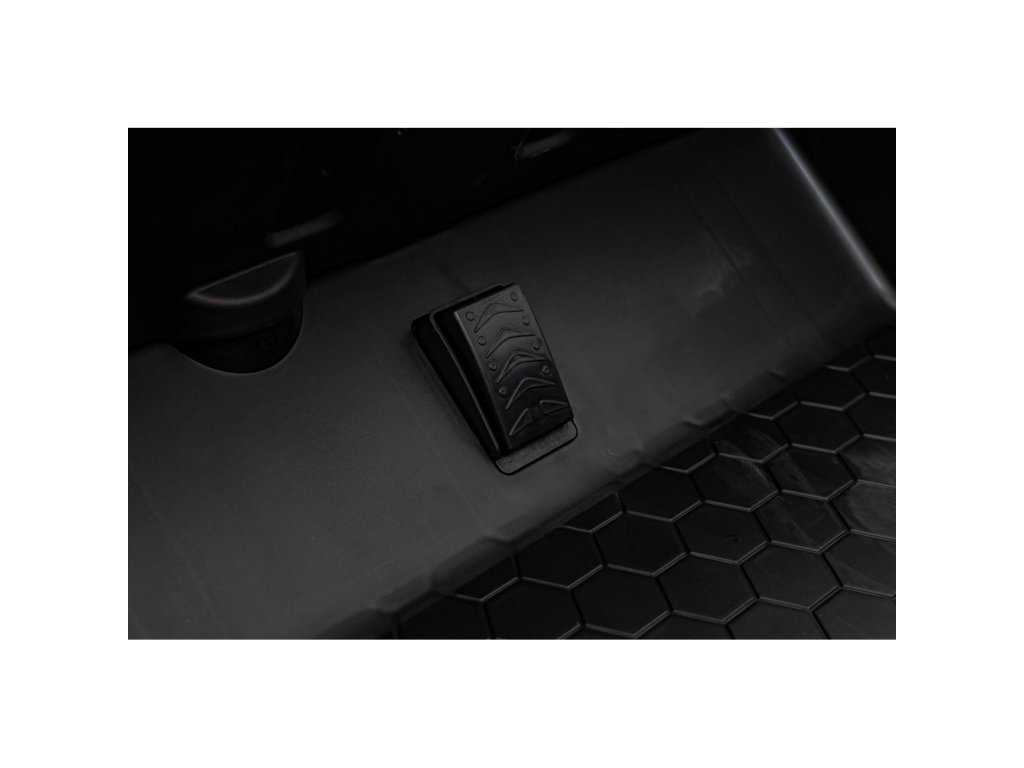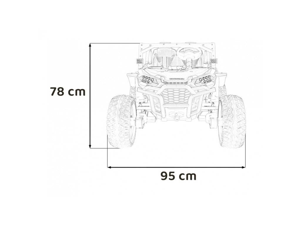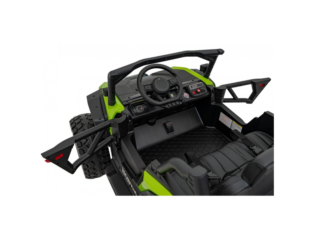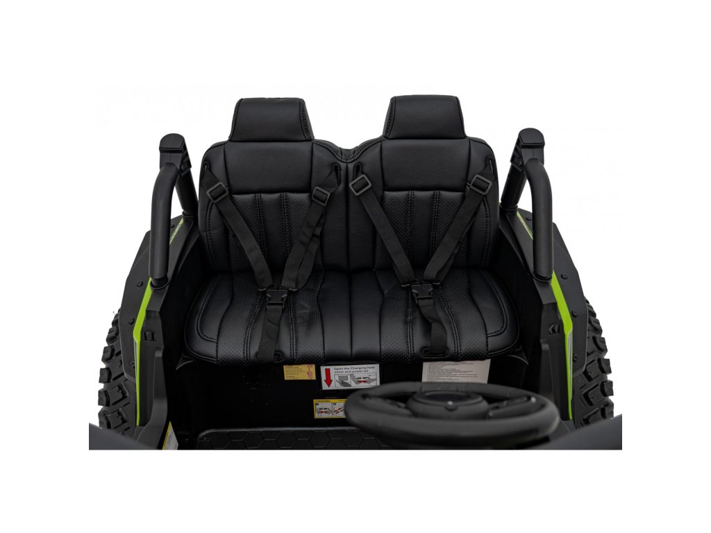 Autíčko můžete ovládat pomocí dálkového ovládání, které pracuje na frekvenci 2,4 GHz. Na dálkovém ovladači jsou tři rychlosti a bezpečnostní tlačítko STOP, které po zmáčknutí okamžitě zastaví autíčko. Sedačka je pokryta ekologickou kůží a nachází se na ní bezpečnostní pásy.