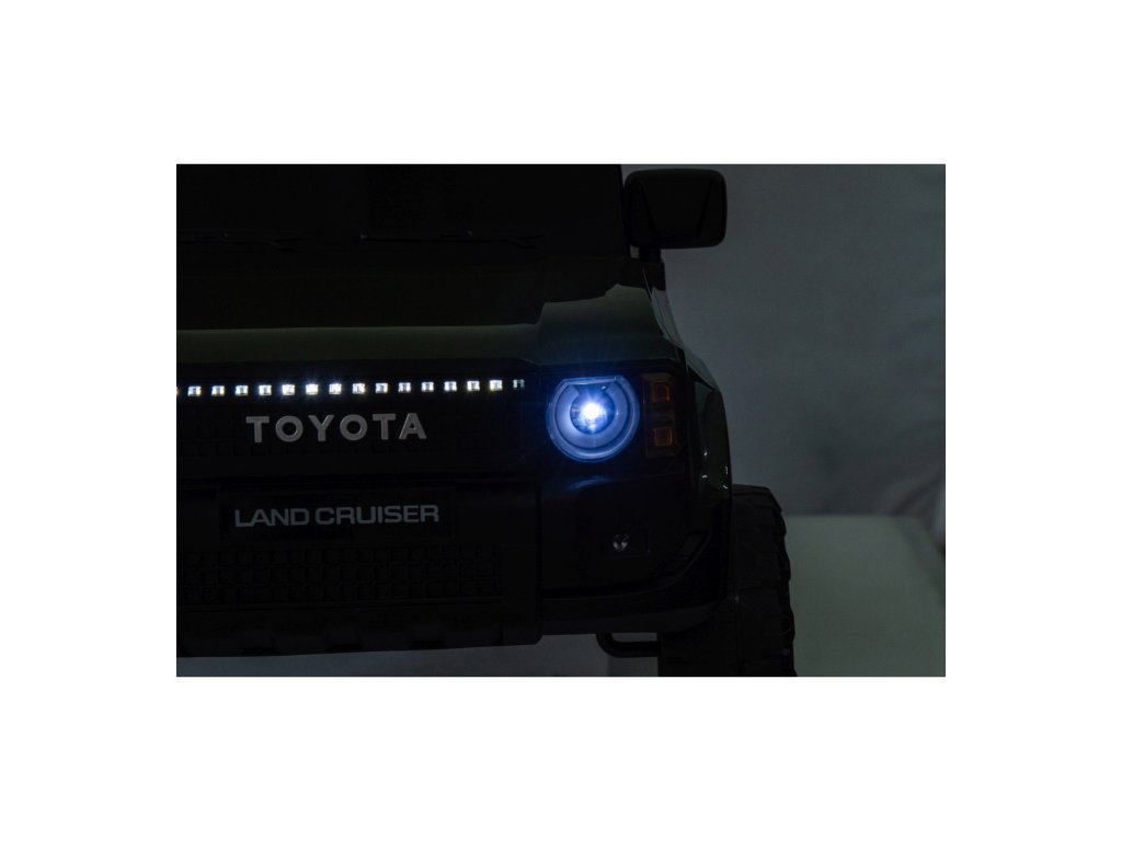 Dětské elektrické autíčko Toyota Land Cruiser PRADO přijíždí na pěnových EVA kolech, která při jízdě neruší. Autíčko je vybaveno pohodlnou sedačkou z ekologické kůže s 3-bodovými bezpečnostními pásy.