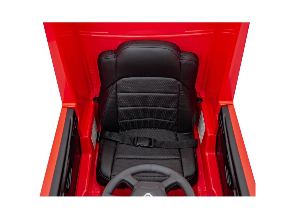 Uvnitř čeká pohodlné sedadlo potažené eko kůží, vybavené bezpečnostními pásy. Dítě si může užít zábavu díky vestavěnému MP3 přehrávači s Bluetooth, USB vstupem a tlačítky zvukových efektů a klaksonu přímo na volantu. Nechybí melodie, realistické zvuky startu motoru a indikátor stavu baterie.