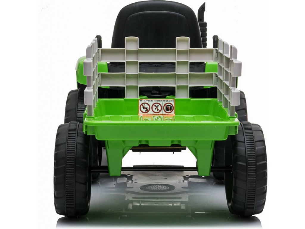 Konstrukce elektrického traktoru je založena na čtyřech kolech. Lehká plastová kola proti propíchnutí. Dětský traktor je poháněn 12V4,5Ah baterií, která je doprovázena motory 2x45W. Traktor je určen pro chlapce i dívky - jediným omezením je zatížení do 30 kg.